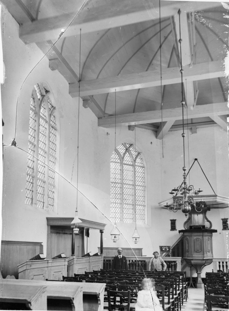 Dit is het interieur van de kerk in Schoorl omstreeks 1902 .