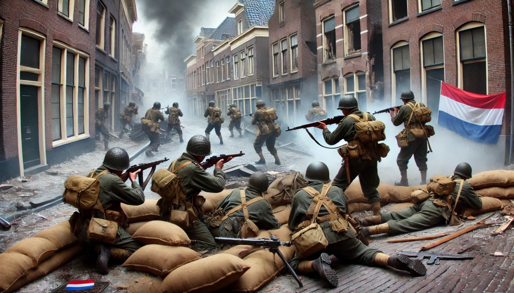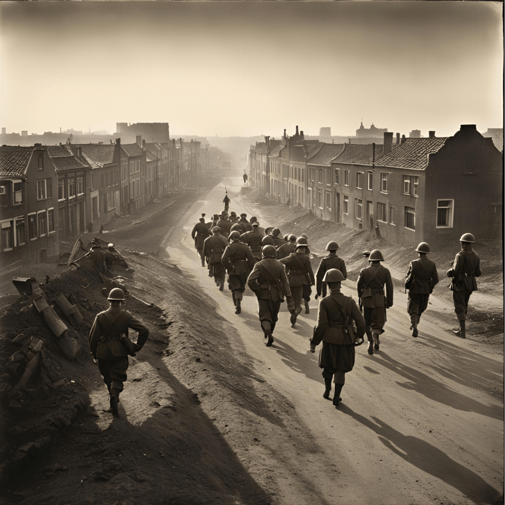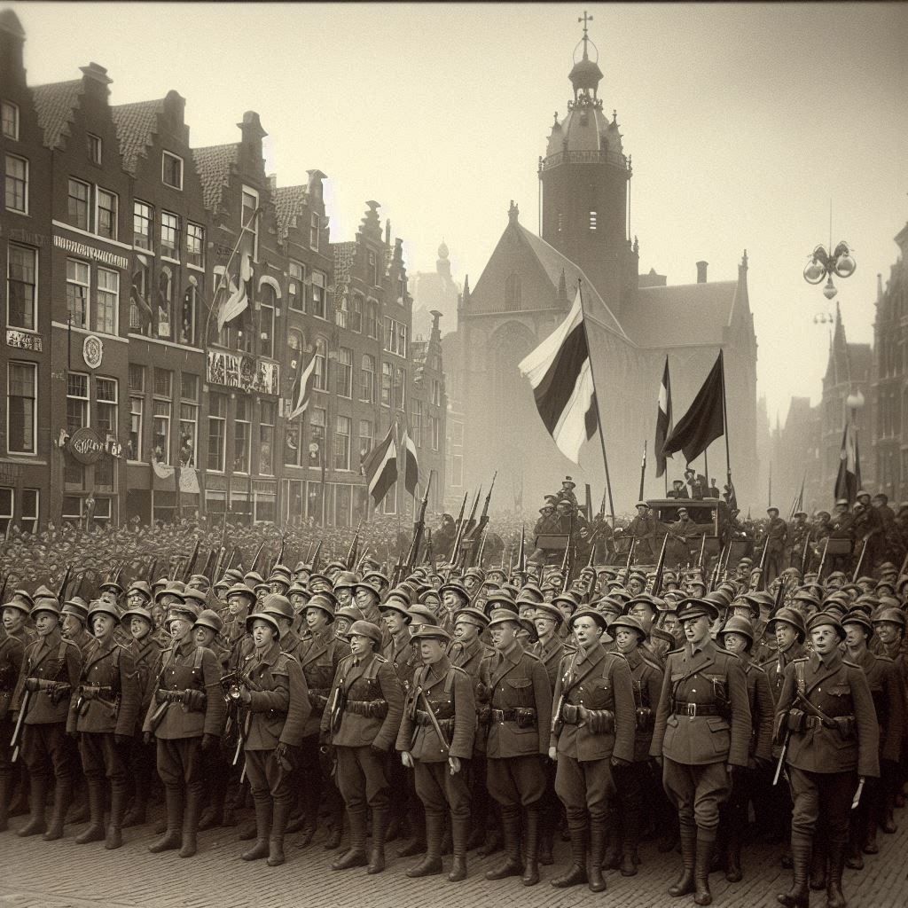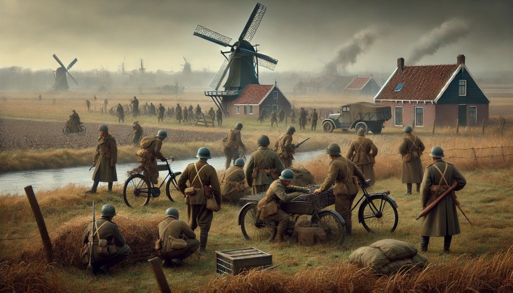 Creëer een historisch plaatje van het Nederlandse leger tijdens de meidagen van 1940.