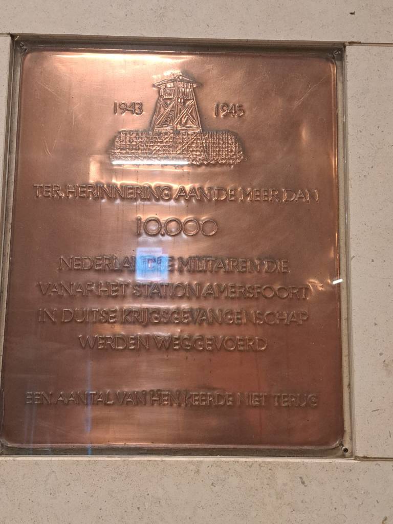 Gedurende een van mijn reizen naar de Universiteit Utrecht stuitte ik op een plaquette op een van de perrons van station Amersfoort. De plaquette herdenkt de Nederlandse militairen die tijdens de Duitse bezetting opnieuw krijgsgevangen werden genomen en daarna naar Duitsland werden afgevoerd.