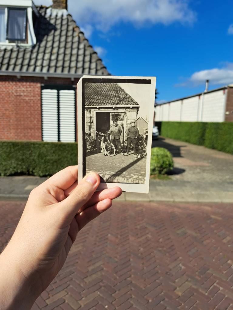 Tijdens de mobilisatie ging Sikke regelmatig met verlof naar huis. In zijn dagboek beschrijft hij dan ook welke plekken hij in Hoorn bezocht. Na zijn mobilisatietijd bleef Sikke in Hoorn wonen, tot zijn overlijden in 1997. Sikke had een hechte band met Hoorn, omdat dat de plek was waar hij zijn gezin had gesticht. Desalniettemin vergat hij nooit waar hij vandaan kwam. Sikke kwam namelijk uit Oudega-W. In zijn dagboek schrijft hij één keer over zijn bezoek aan Oudega-W tijdens zijn verlof. Ook na de Tweede Wereldoorlog keerde hij vaak terug naar zijn geboortedorp, samen met zijn kinderen. Ik (Lars) heb beide plaatsen bezocht en de locaties uit Sikke’s verleden gefotografeerd. Hieronder kunt u de foto’s bekijken en vergelijken.