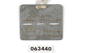 Nederlandse identiteitsplaatjes werden gebruikt tijdens de mobilisatieperiode. Dankzij deze plaatjes kon men de identiteit van soldaten vaststellen in het geval van sneuvelen. Het identiteitsplaatje op deze foto behoorde toe aan Bram.