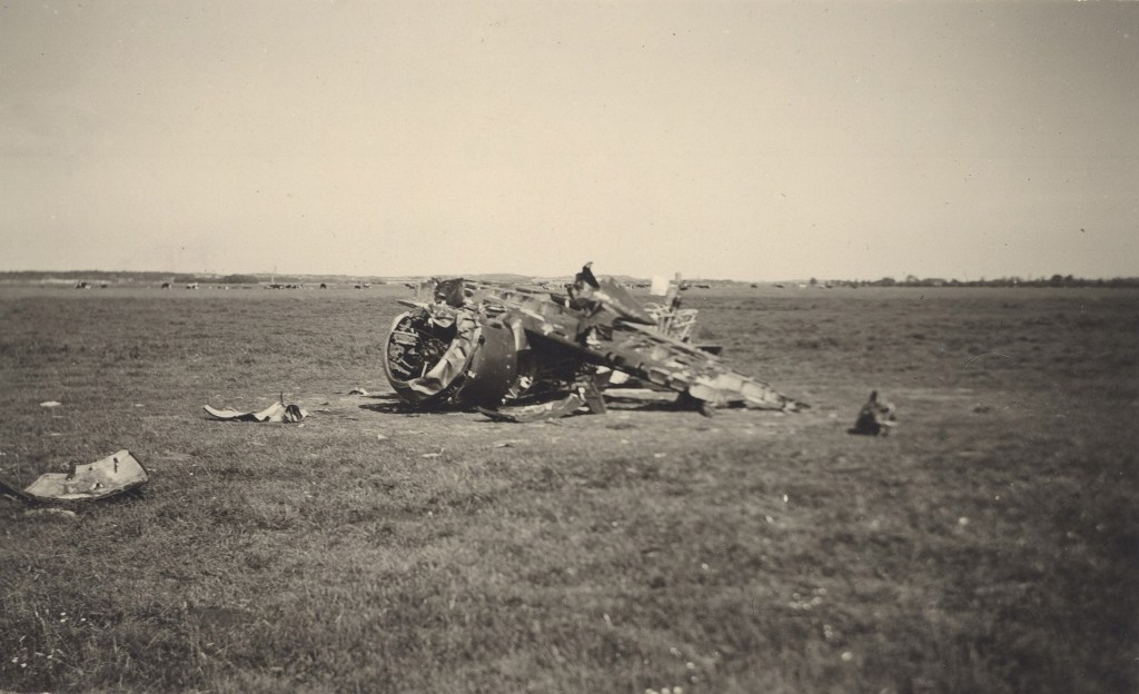Tijdens de Meidagen werd er ook hevig gevochten in de lucht tussen Duitse en Nederlandse vliegtuigen. Hierdoor lagen er na de Nederlandse capitulatie diverse Nederlandse en Duitse vliegtuigwrakken verspreid over Nederland. Op deze foto is een Nederlands vliegtuigwrak te zien van de Fokker D.21 bij Kijkduin.