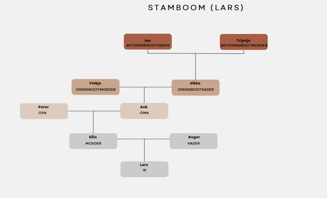 Dit is mijn stamboom. Hierin kunt u zien hoe Sikke zich tot mij verhoudt. In deze stamboom zijn ooms, neven, nichten, tantes, broers, zussen en schoonfamilie niet opgenomen.